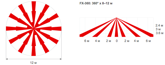 Площадь детекции 8-12 м х 360°